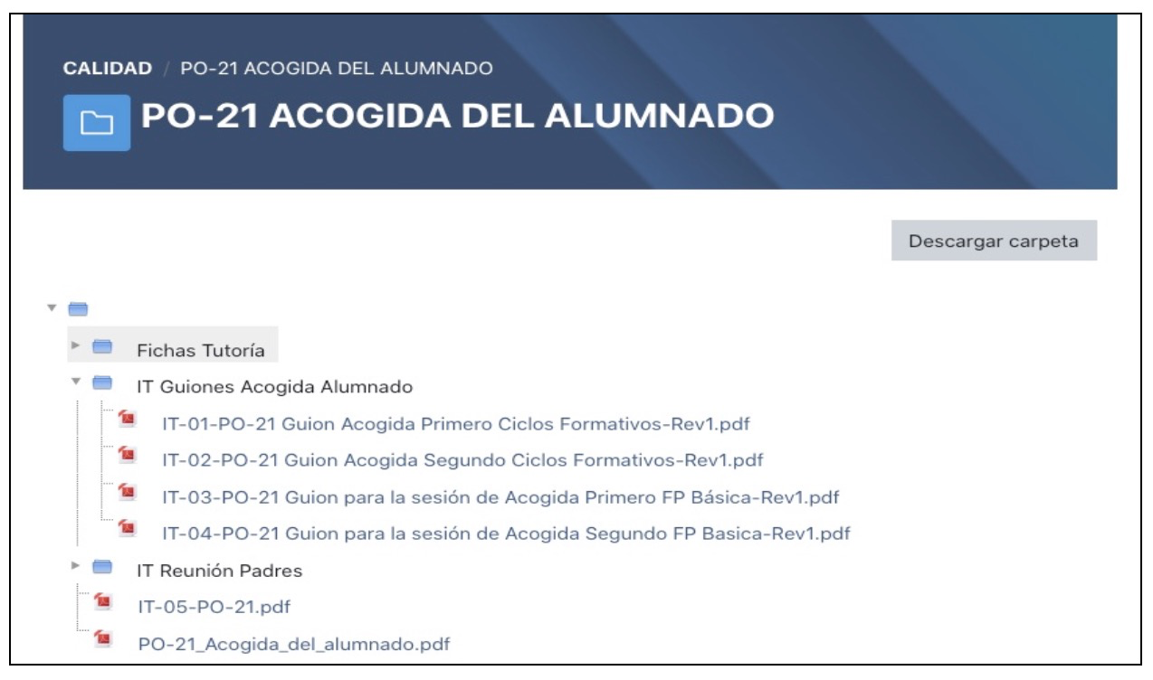 El PO-21 (Acogida) contiene instrucciones con un guión sobre los temas a tratar en la sesión de acogida disponible en el curso ‘Calidad’ del Aula Virtual (IT-01-PO-21, IT-02-PO-21, IT-03-PO-21, IT-04-PO-21)