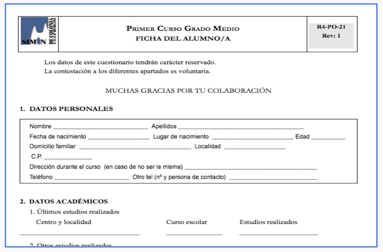 - Se recogen datos personales y académicos que resultan útiles para conocer al alumnado de cara a la Evaluación Inicial