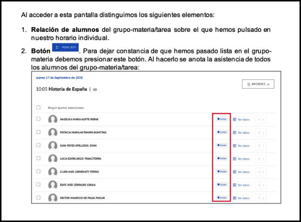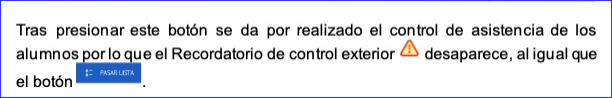 5. Aunque no haya habido ausencias en algún periodo de clases es necesario dejar constancia de que se ha realizado el control de faltas pulsando el botón “Pasar Lista” en la pantalla en la que se visualiza el listado de alumnos del grupo.